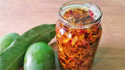 উপকরণঃ কাঁচা আমের ঝুরি এক কাপ পেঁয়াজ কুচি এক কাপ জিরাগুঁড়া দুই চা-চামচ কালো জিরাগুঁড়া আধা চা-চামচ সরষেগুঁড়া এক টেবিল-চামচ মরিচগুঁড়া দুই চা-চামচ সরিষার তেল আধা কাপ লবণ পরিমাণ মতো। প্রণালীঃ আমের ঝুরি এবং পেঁয়াজের কুচি আলাদাভাবে একদিন রোদে ভালোভাবে শুঁকিয়ে নিতে হবে। তারপরের দিন বাকি সব উপকরণগুলি দিয়ে, ভালোভাবে হাত দিয়ে মাখিয়ে বোতলে ভরে…